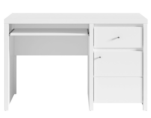 Система КРИСТИНА Стол письменный_BIU 1D1S 120 (B) найдет уютное пристанище в кабинете или детской комнате, что имеет изысканные нотки в дизайне. Главным образом это касается классических интерьеров. Даже оттенок мебели (белый) подтверждает этот факт. Характеристика стола впечатляет и радует качественными материалами, выбранными для создания компьютерного стола из этой польской коллекции. Корпус и фасад рабочего стола выполнен из ДСП с элементами МДФ, ПВХ и пленки Приобрести письменный стол рекомендуется всем, кто оценит красоту и качество товара. Цена целиком подтверждает эти показатели. Купить компьютерный стол Кристина можно прямо сейчас по доступной цене.
