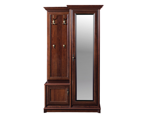 Мебель Соната характеризуется изысканным дизайном цоколей, карнизов и дверок, стеклами с фрезерованными краями и утонченными патинированными ручками. Слегка выступающий цоколь придает модулям устойчивости. Фрезерованная рамка фасадов, фигурные карнизы, фацетованные грани стекол подчеркивают классический стиль коллекции.