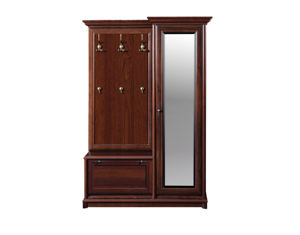 Мебель Соната характеризуется изысканным дизайном цоколей, карнизов и дверок, стеклами с фрезерованными краями и утонченными патинированными ручками. Слегка выступающий цоколь придает модулям устойчивости. Фрезерованная рамка фасадов, фигурные карнизы, фацетованные грани стекол подчеркивают классический стиль коллекции.