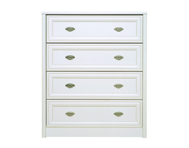 Комод Салерно KOM4S легко сделает вашу гостиную, спальню либо другую комнату более комфортабельной и стильной. Этот атрибут мебели точно станет её изюминкой. А причиной этому послужит красивый белый цвет. Характеристика комода впечатляет качеством материалов, из которых он сделан. Материал корпуса и фасада – различен. Корпус изготовили из ламинированной древесно-стружащей плиты, фасад – из плиты МДФ разновидности. Потребность купить комод можно удовлетворить за несколько минут, тем более, что качество и цена изделия подталкивают к такому решению.