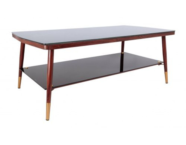 Стол журнальный MASON, 120*60*45, (Черный мрамор/орех с золотым наконечником)