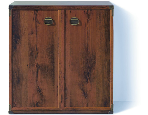 Мебель Индиана представлена в цвете: дуб шуттер или сосна каньон. Характеризуется интересным дизайном, имитирующим состарившееся отполированное дерево, оригинальной формой ручек и закругленными металлическими краями верхних и нижних углов.