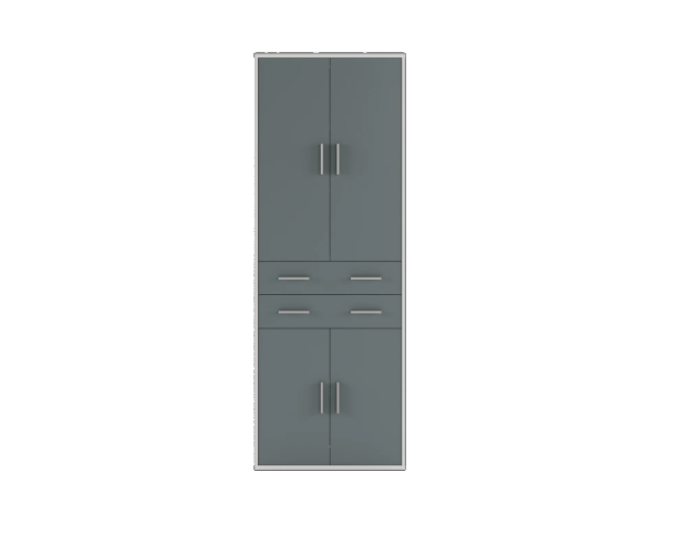 Пенал REG 4D2S/220 из набора мебели "КАБИ" четырехдверный с двумя выдвижными ящиками – элемент модульной системы Каби. В верхнем отделении расположены две полки, в нижнем – одна.