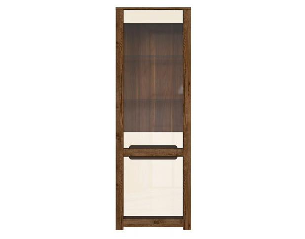 Система ЭРИКА витрина REG1W1D полюбится вам и станет вашим помощником в быту. Гармоничный цвет изделия – дуб техас (корпус) и светло-серый софт тач (фасад) – сочетается с большинством современных интерьеров. Функциональные возможности витрины нельзя не заметить. Характеристика мебели зависит от наличия отсеков под хранение вещей, подвижных ящиков, интересных полок. Корпус и фасад мебели создан из древесно-стружащей плиты. Функциональные возможности витрины нельзя преувеличить. Характеристика мебели радует нишами для хранения вещей, тумбами на фирменных петлях, стеклянной полкой. Корпус и фасад мебели сделан из ламинированной древесно-стружащей плиты.За верхней дверью со вставкой из прозрачного стекла расположены две стеклянные полки, оборудованные подсветкой. В нижнем отделении находится одна полка из ДСП. Двери открываются при помощи фрезеровки на панелях, декорированной с внутренней стороны контрастной планкой. Дверные петли могут быть установлены как слева, так и справа. Используются петли FGV Slide-on 90 Alfa.
